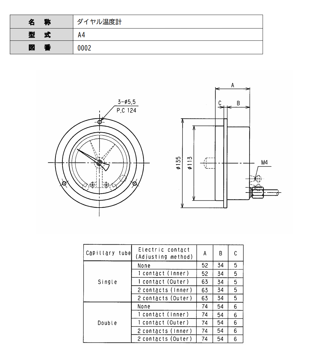 日本兵田计器 HYODA 充液压力温度计 A4型(Φ100)