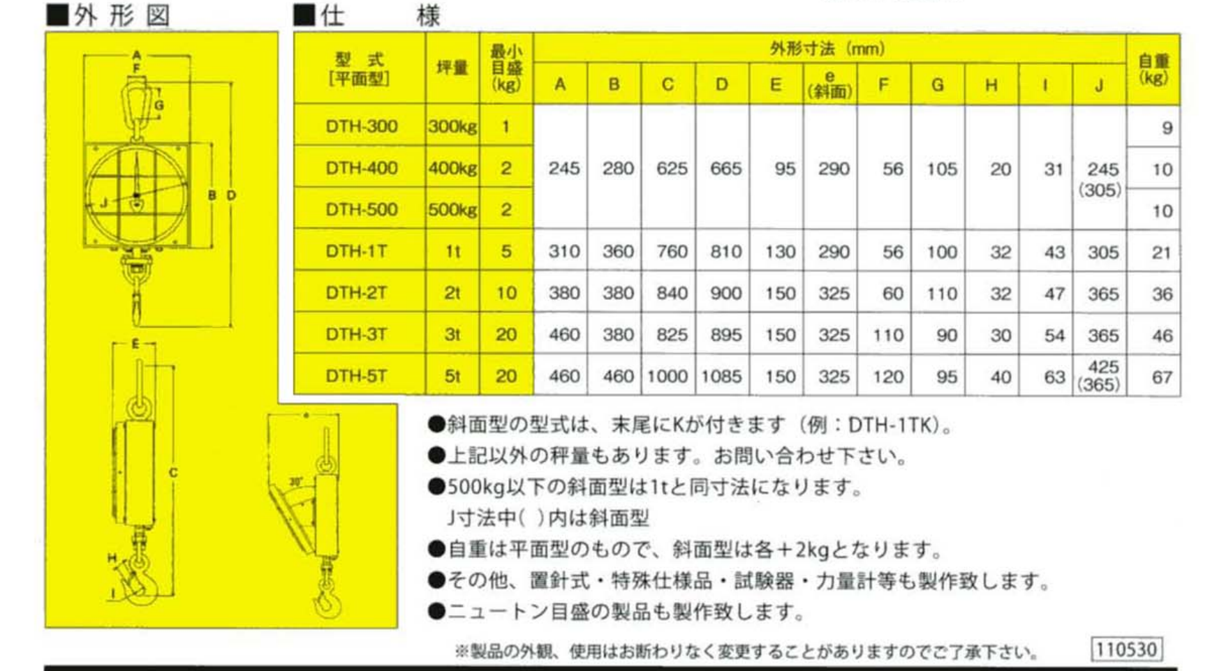 日本长岛衡机 斜面型 吊秤 DTH-500K DTH-3TK