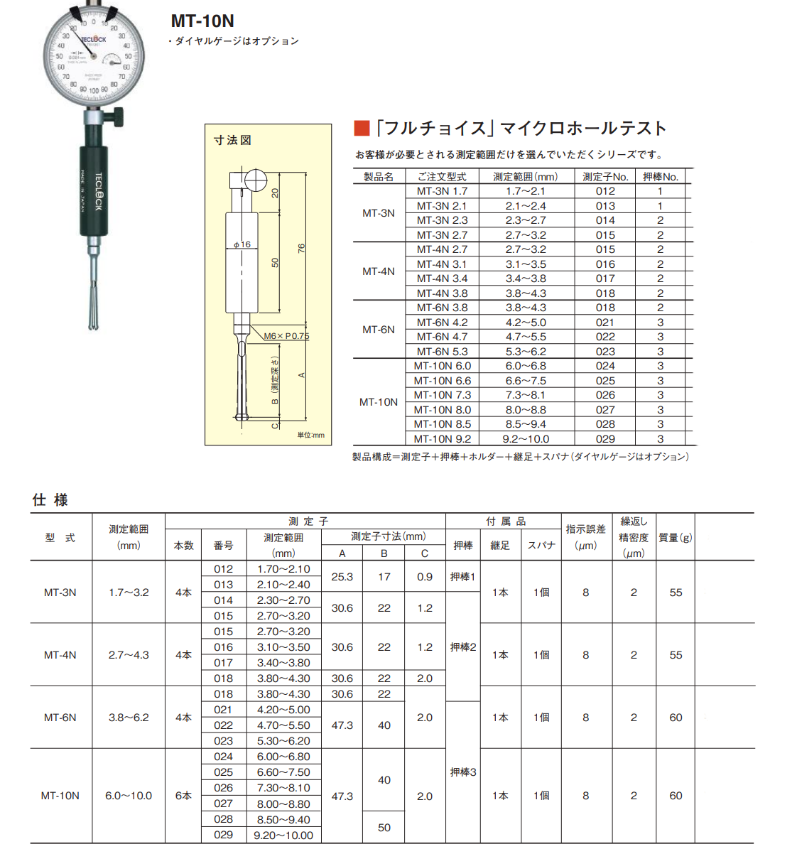 日本得乐TECLOCK 缸径规 内径表 MT-6N MT-10N