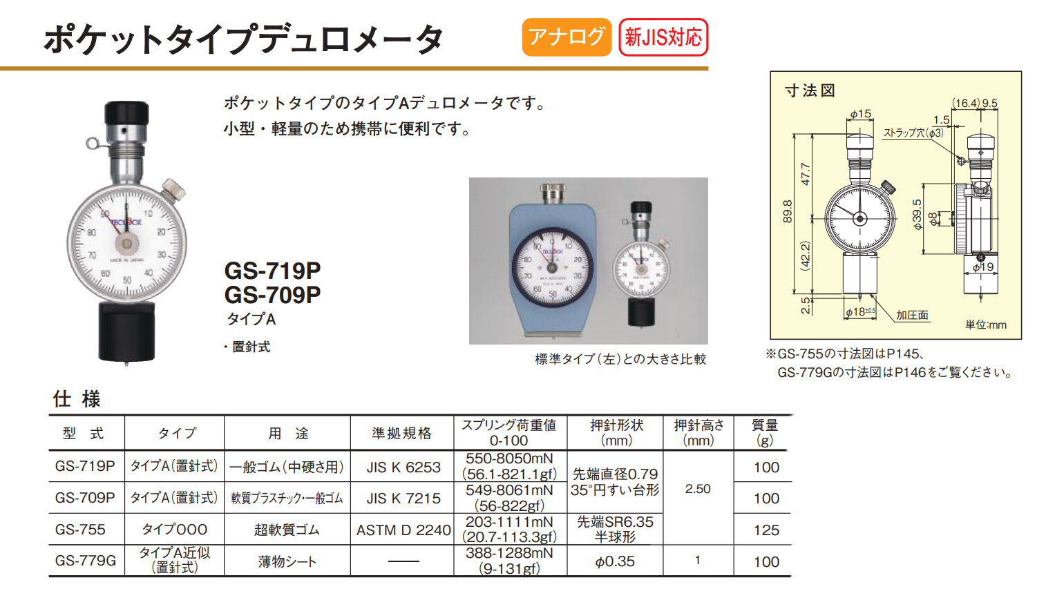 日本得乐TECLOCK 便携式橡胶硬度计 GS-719P GS-709P
