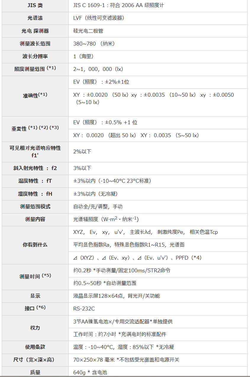 JIS 类JIS C 1609-1:符合 2006 AA 级照度计