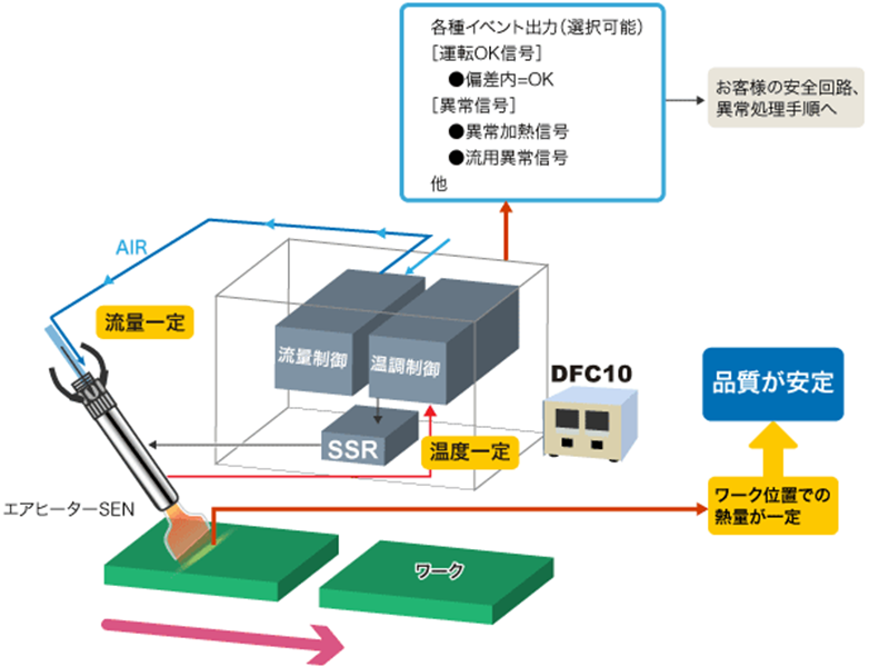 数字流量控制器DFC-10精确控制超级空气加热器的热风温度和空气流量,以保持给予工件的热量恒定。