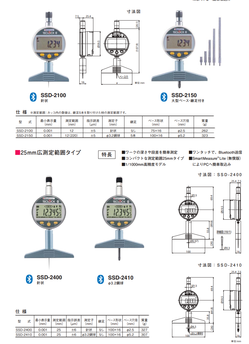 日本得乐TECLOCK 蓝牙数显深度计 SSD-2100 SSD-2150